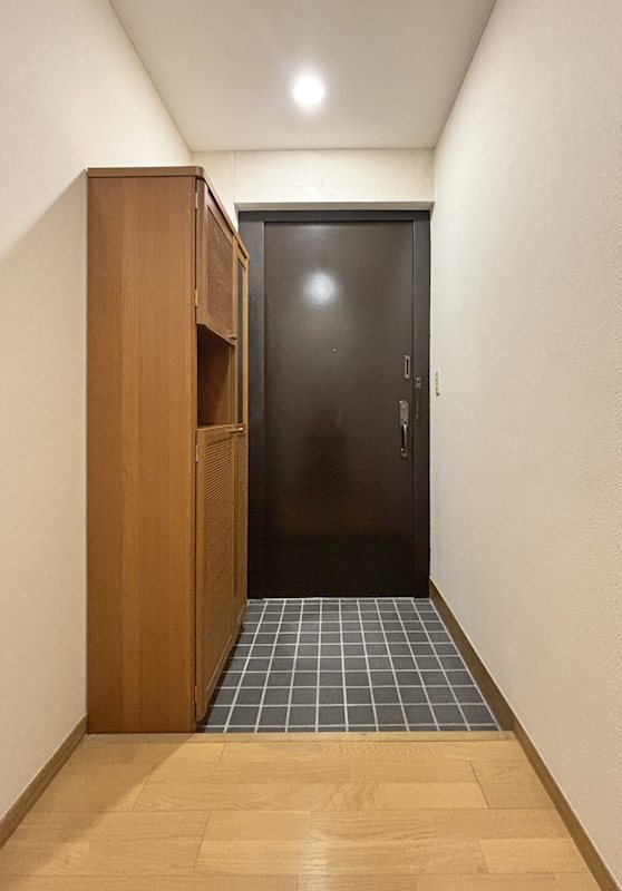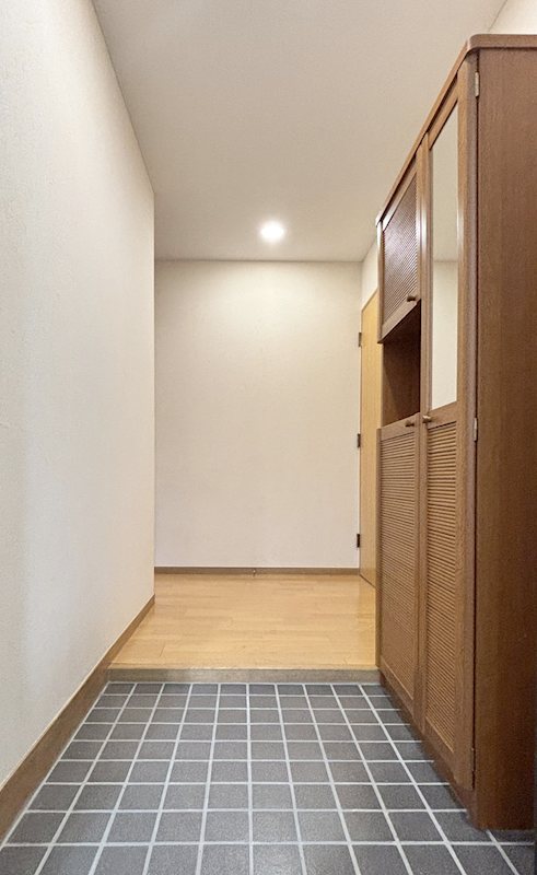 【玄関】内側から撮影。平成29年に床をカーペットからフローリングに変更されました。