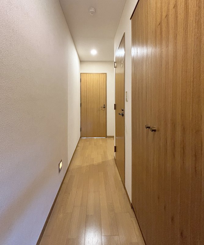 【廊下】リビングから洋室に移動します。廊下には収納が設けられています。