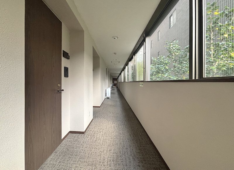 館内は内廊下です。フロントと同じ階のためエレベーターの乗降が不要となります。ゴミ出し、引っ越しなどが便利です。