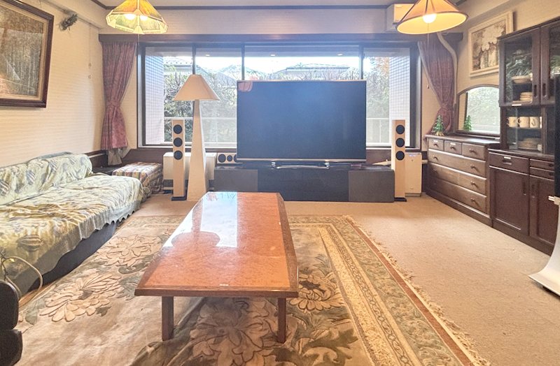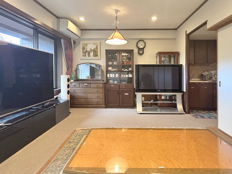 別角度からのLDKです。TV2台、化粧台、サイドボード等も余裕をもって配置可能です。