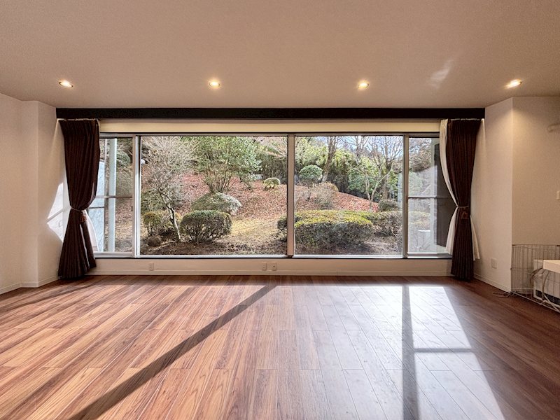 【リビング】大きな窓から緑を望む、開放感のあるリビングです。