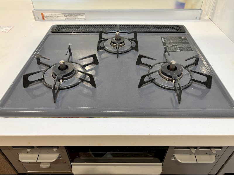 【キッチン】3口コンロが備わります。