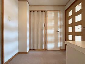 【玄関】玄関横にはトイレと浴室が備わります。