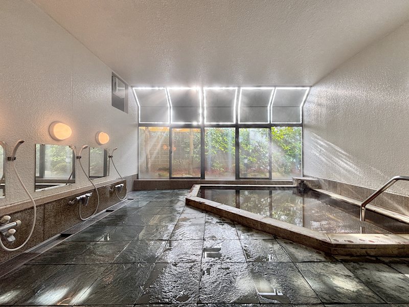 【大浴場】窓外の植栽に癒されることが出来ます。