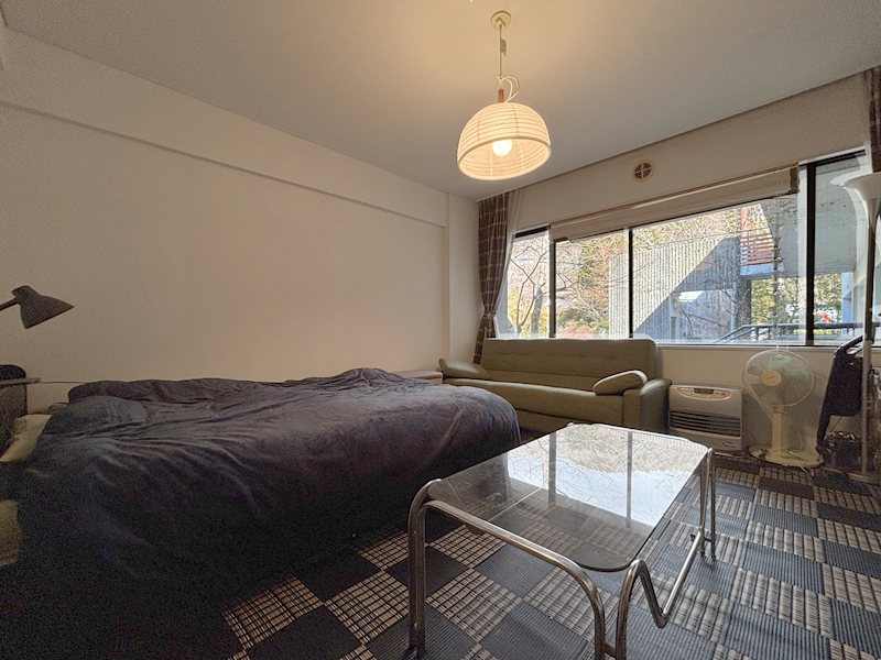 ベッドとソファを置いても十分なゆとりがあります。就寝前の読書など、自分だけの時間を静かに過ごせます。