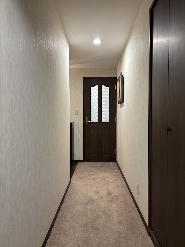 室内に進みます。清潔感のあるカーペット敷きの廊下。玄関から各部屋へゆとりを持って繋がります。