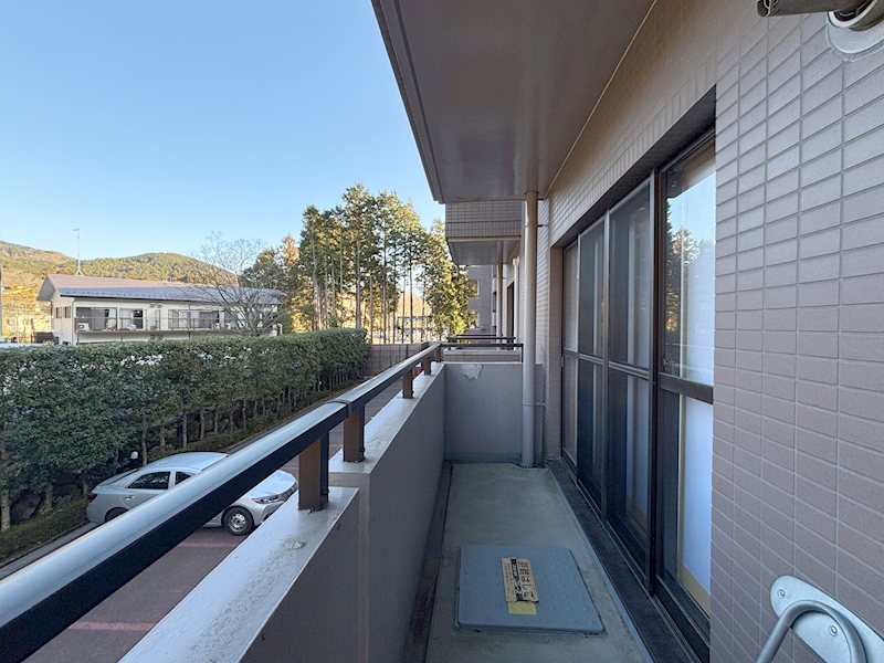 抜け感のある眺望ではありませんが、2階部分ながら視界が開けており、山景を身近に感じられます。