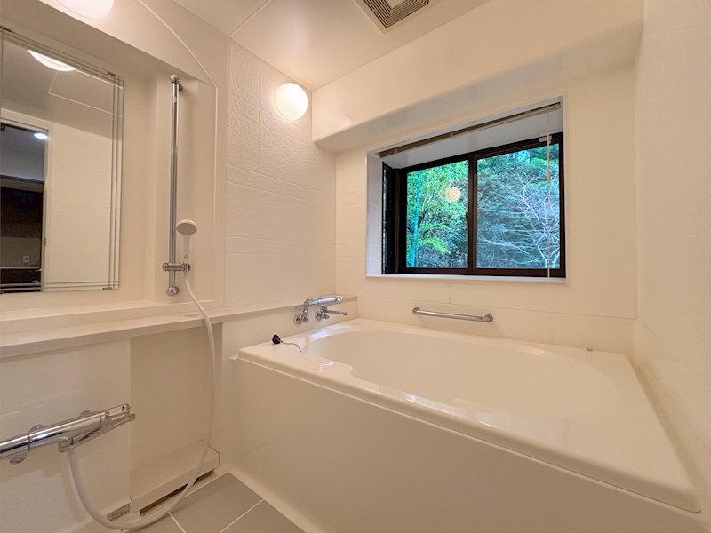 窓のある浴室は少し広めのサイズです。温泉大浴場がございますので、ほぼ利用されていないようです。