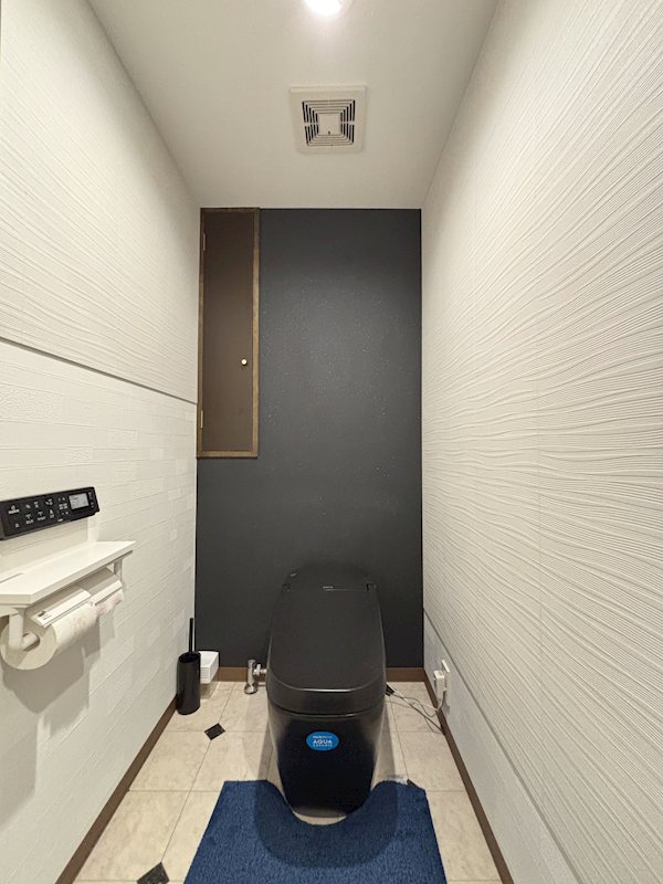 トイレはタンクレス、手洗い器別のスタイリッシュなデザインです。
