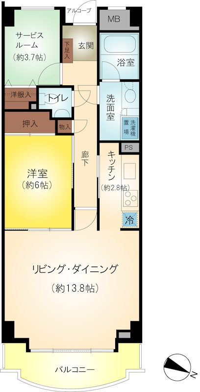 | 専有面積 | 63.90m² (19.32坪) | バルコニー面積 | 6.82m² (2.06坪) |