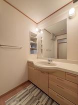 洗面脱衣室です。洗面台も大きく、比較的綺麗な状態です。