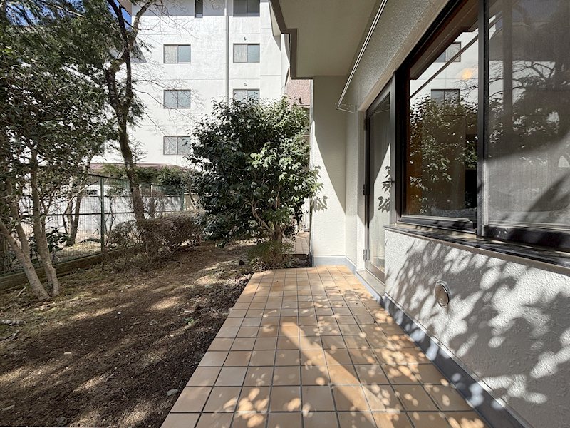 テラスの先は専用庭です。約19.2㎡(実測による)のスペースです。