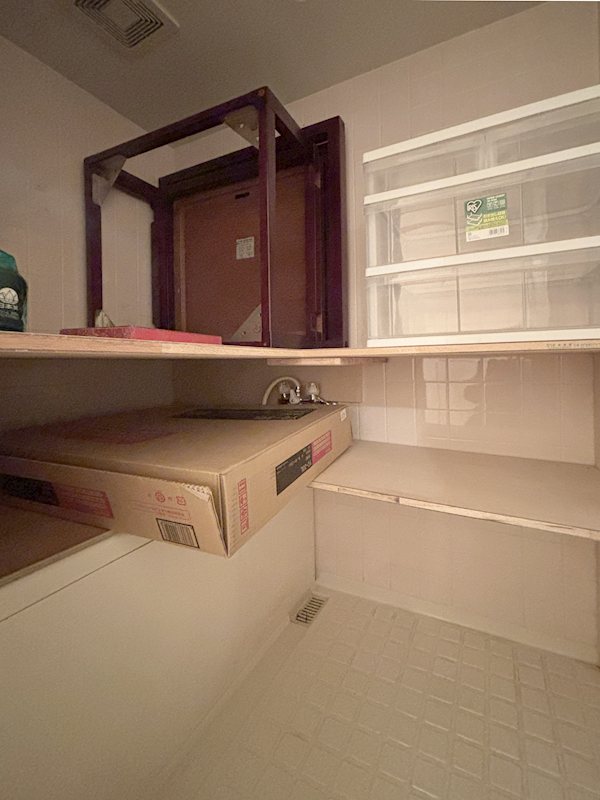 浴室は物置としてご利用されています。照明は撤去されています。ご利用の際は現状回復工事を要します。