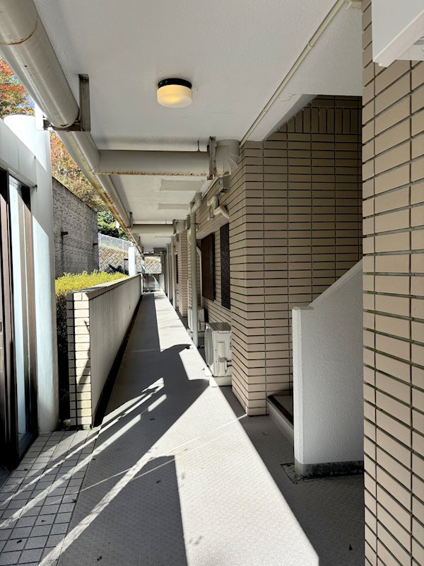 【共用廊下】A棟は2階がグランドフロアのため、公共交通機関でアクセスされる際は便利です。