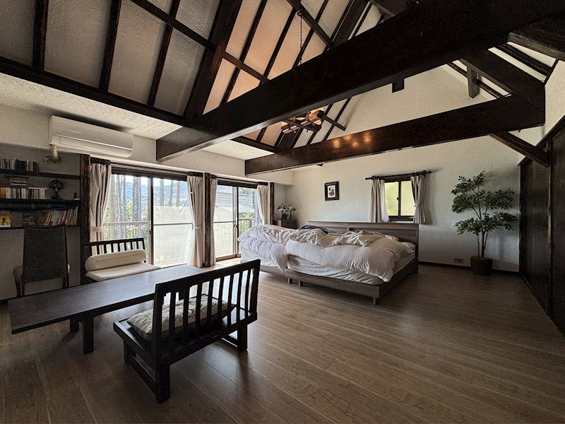 大型のベッドを置いてもゆとりある広さです。リゾートならではのオープンな間取りです。