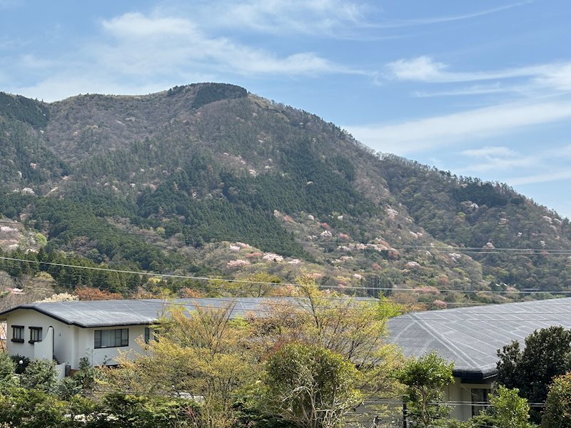 窓一面に広がる箱根の自然。コーナーサッシからは、陽光に映える四季折々の山景を一望します。