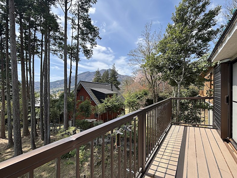 一段高い敷地から山々と空を仰ぐ、プライバシーの保たれた静謐な環境。温泉引き込みも可能な別荘地内の一軒です。