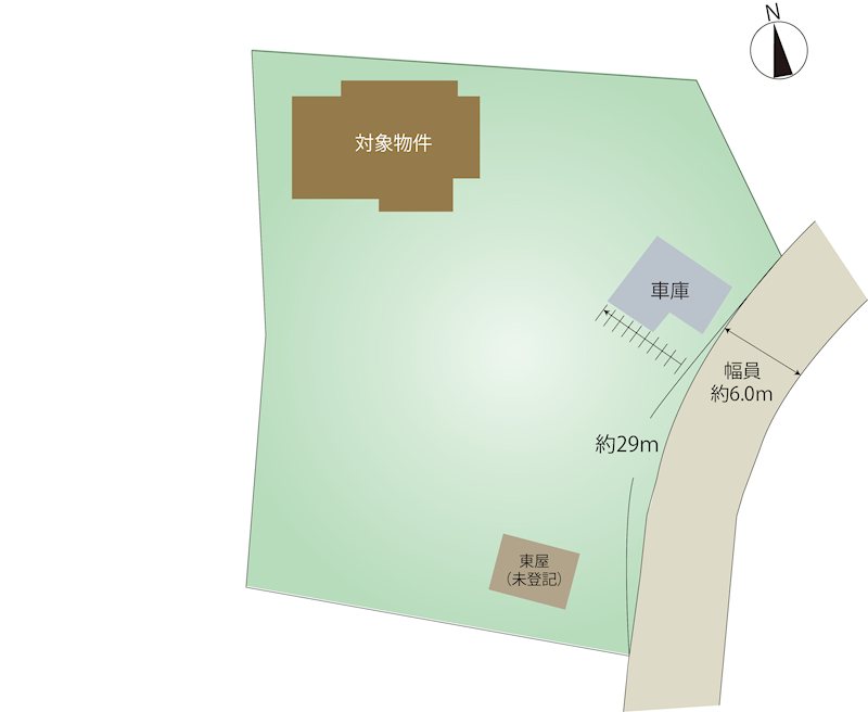| 主な接道 | 私道、南、幅員:6m、接道長さ:29m、舗装あり | ||