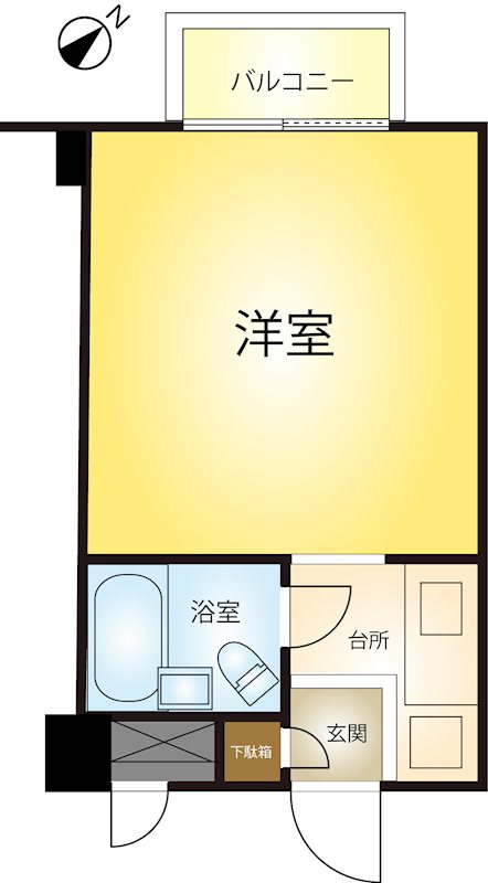 専有:21.59m² / 間取り:1K 昭和45年(1970年)6月 / 6階だての1階