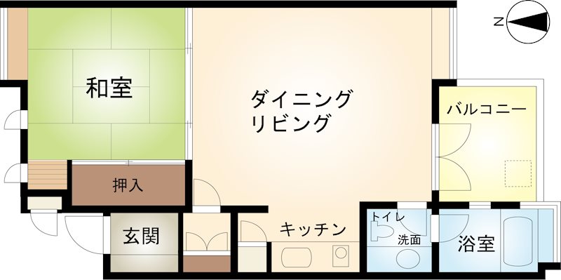 専有:61.76m² / 間取り:1LDK 平成2年(1990年)8月 / 5階だての4階