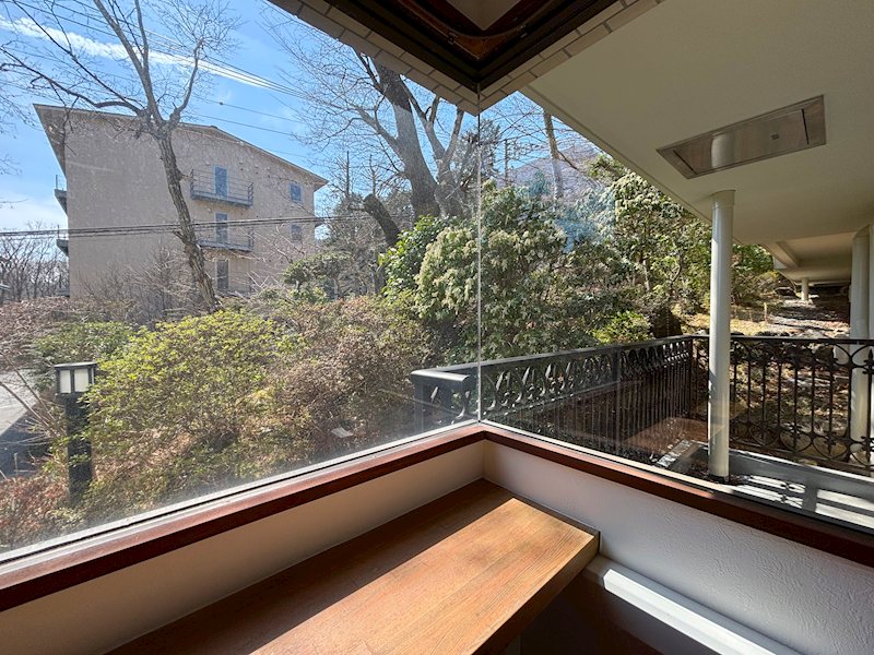 4階2LDK、バス停コンビニ至近。戸別温泉をタイプのリゾートマンション。 ◆室内状態は比較的良好 ◆室内から緑の木々を望む ◆小涌園ユネッサン、岡田美術館徒歩圏
