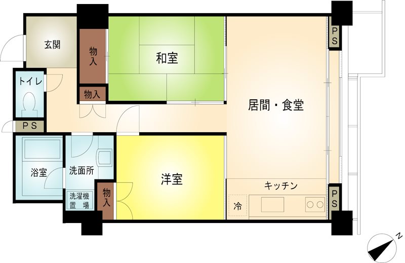 専有:67.46m² / 間取り:2LDK 昭和49年(1974年)1月 / 13階だての2階