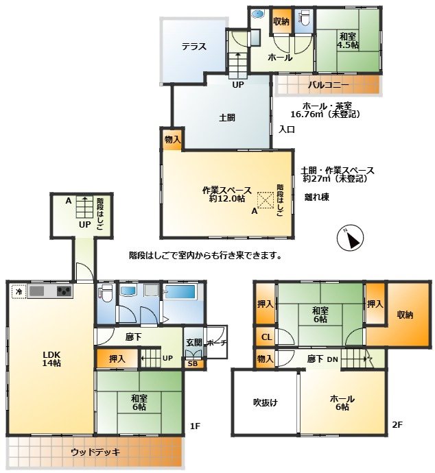 床面積は土間と作業スペースを抜いた合計面積です。