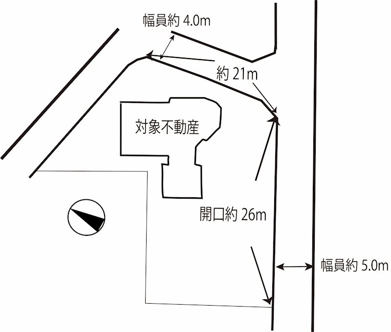 主な接道 | 私道、北東、幅員:4m、接道長さ:21m