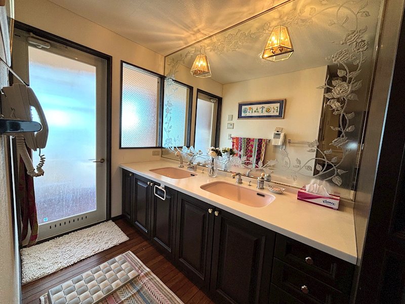 | 設備 | 家具付、3口以上コンロ、L字型キッチン、システムキッチン、対面式キッチン、グリル、キッチンに窓、IHクッキングヒーター、オーブン、給湯、暖炉、エアコン、TVインターホン、フローリング、室内洗濯機置場、ホームエレベーター、クローゼット、シューズボックス、ウォークインクローゼット、押入、収納有、クローゼット4ヶ所、サウナ、シャワー、トイレ有、バス・トイレ別、バス有、温水洗浄便座、洗面化粧台、洗面所にドア、洗面所独立、脱衣所、暖房便座、トイレ2ヶ所、トイレ3ヶ所、浴室に窓、南面バルコニー、家庭菜園、畑、玄関ホール、南面リビング、吹抜け、南面4室、リビング吹抜け、玄関ポーチ、南面2室、南面3室、シャッター付駐車場、平置駐車場、舗装駐車場、屋根有駐車場、ビルトインガレージ、並列2台可、エレベーター | ||