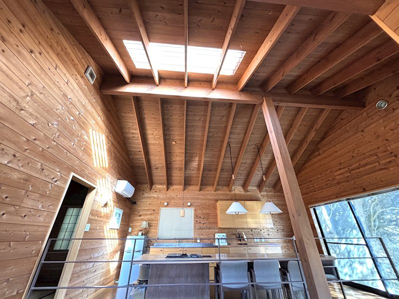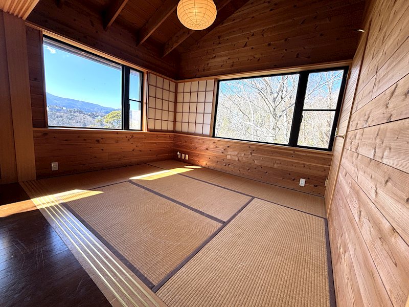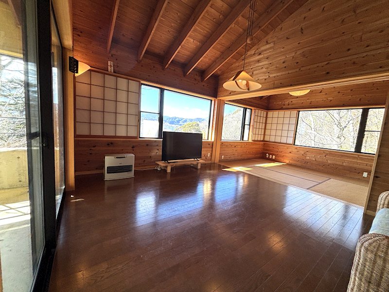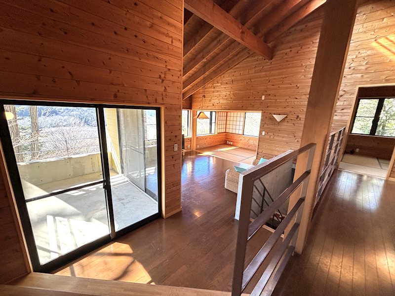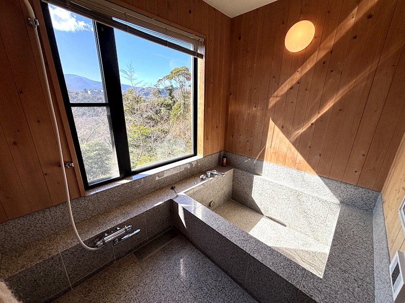 傾斜のある土地の上部に建てることにより、リビング、キッチン、浴室、トイレからも一碧湖や大室山など四季折々の風景を楽しむことができます。
