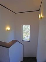 開放的な玄関から階段スペースにかけての吹き抜けです。