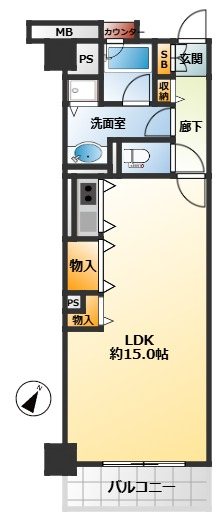 専有:54.05m² / 間取り:1LDK 平成10年(1998年)7月 / 7階だての6階