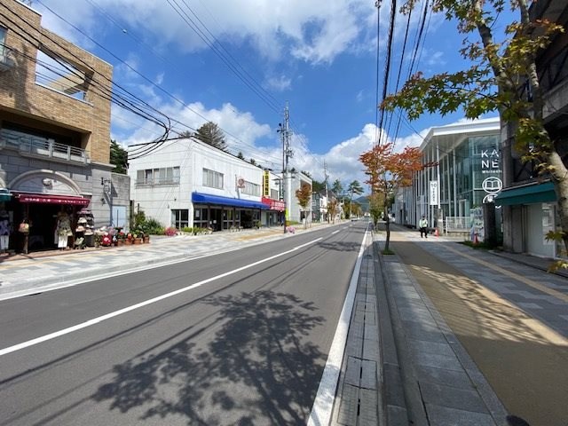 軽井沢駅北口から広がる「軽井沢本通り」です。