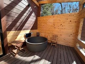 室内風呂の脇からデッキへ出ると露天風呂がございます。