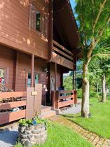 夏季は芝庭の緑と木々の緑がとても綺麗です。