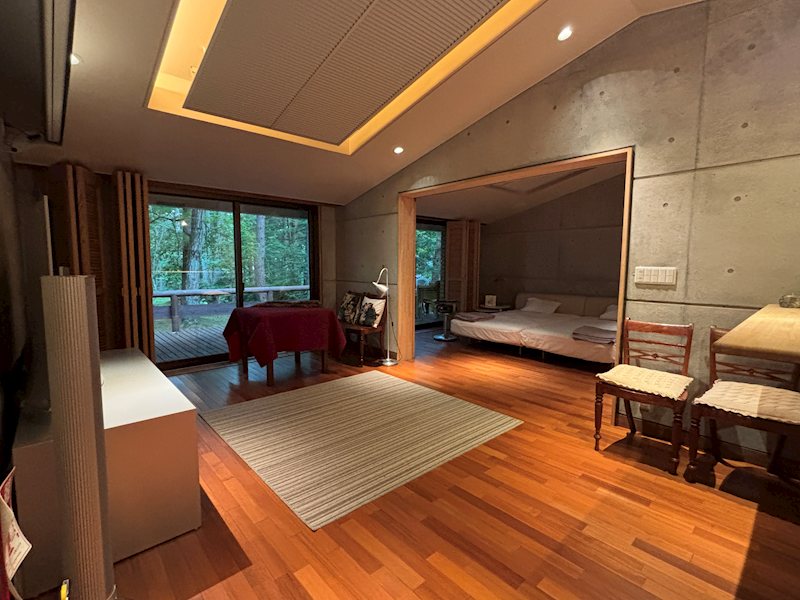 設備 | ネット使用料不要、家具付、照明付き、テレビ、ベッド、家電付、洗濯乾燥機、洗濯機、電子レンジ、冷蔵庫、ダイニングテーブル・デスク、3口以上コンロ、IHクッキングヒーター、オーブンレンジ、食器乾燥機、給湯、エアコン、床暖房、暖炉、TVインターホン、ウォークインクローゼット2ヶ所、洗面所に窓、洗面所独立、暖房便座、追い焚き風呂、浴室に窓、トイレ3ヶ所、バス・トイレ別、南面バルコニー、リゾート向き、ゴルフ場が近い、テニスコートが近い、一種低層、避暑地、ビルトインガレージ | ||