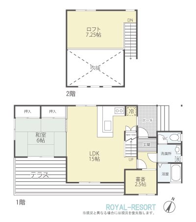 設備 | IHクッキングヒーター、システムキッチン、灯油ボイラー、フローリング、室内洗濯機置場、シューズボックス、押入、バス・トイレ別、洗面化粧台、浴室に窓、南庭、ロフト、吹抜け | ||
