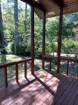 木々に囲まれた、軽井沢らしさを感じるウッドデッキ。