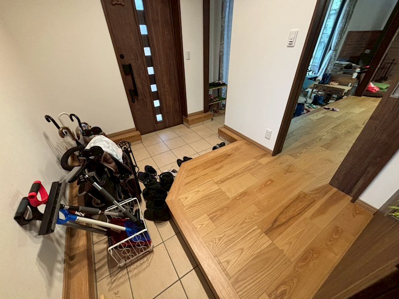 広々した玄関でシューズボックスとシューズインクロークもございます。置いてある小物類は撤去となります。