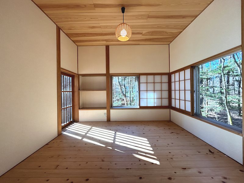 和のこころを存分に楽しめる別荘が登場です!工夫された空間設計、コンパクトながらゆとりあるプライベート空間、まるで京都にあるようなお洒落な建物です!周辺には緑が豊かにありますが、ハルニレテラスや野鳥の森へ、足を延ばして千ヶ滝までの散歩コースもおすすめ!国道からのアクセスも良く週末を森の中でゆっくり過ごしたい方にピッタリな別荘です!