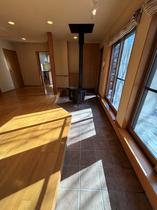 住友林業施工の住宅。薪ストーブと土間玄関あり。平坦地でICから近く、ゴルフ場にも徒歩圏内で行ける人気のエリア。