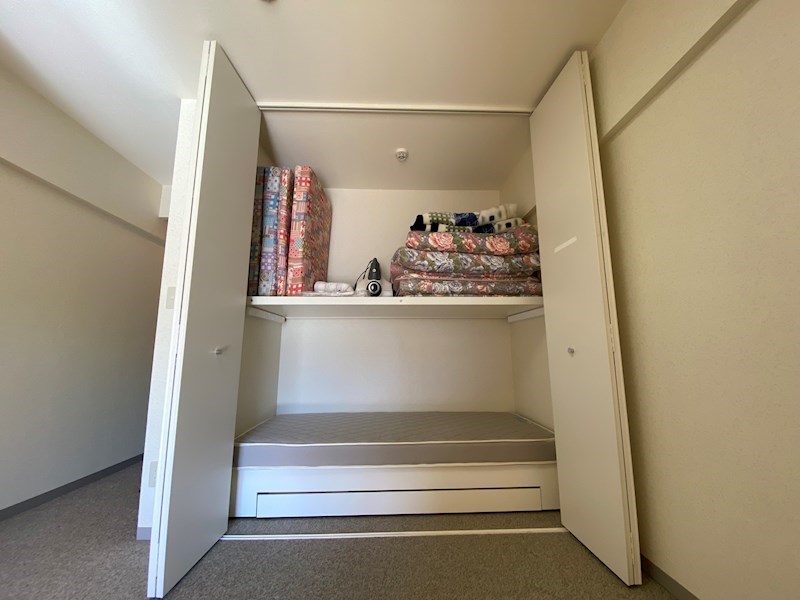 収納スペースには、ベッドが設置されており、来客時に重宝します。