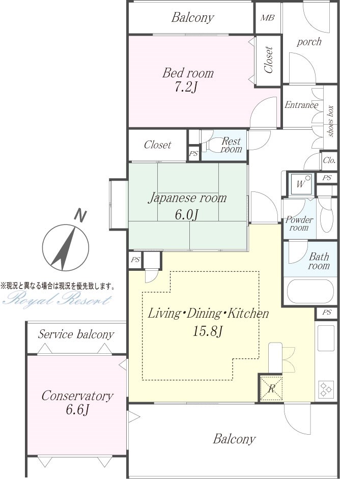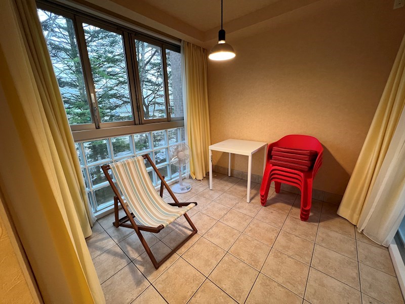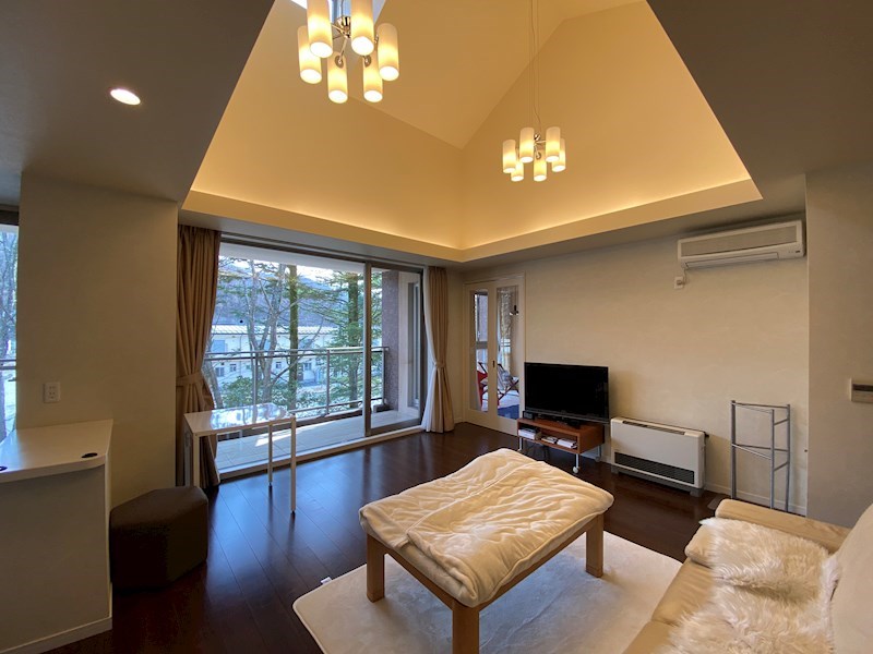 ゆとりある敷地に余裕をもって建築された、低層2階建てのマンション!敷地内にはたくさんの樹木が配され、緑あふれる環境となっています!お部屋はコンサバトリー付の2LDKのタイプ!リビングに隣接した和室もご利用しやすい間取り!南側にバルコニー、コンサバトリーがあり、リビングは2階ならではの開放感のある吹抜け天井です!Wi-Fi完備でリモートワークの方にもおススメです!マンション周辺の閑静な住環境は、軽井沢町内のマンションでも一押しです!