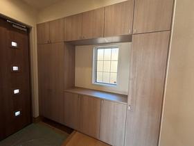 玄関には、天井近くまで高さのある大容量のシューズボックスを完備。