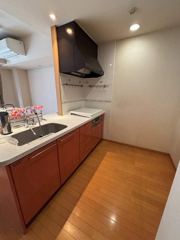 冷蔵庫やキッチンラックを置くスペースは十分ございます。