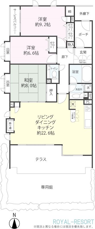 東急矢ヶ崎別荘地内の閑静な住環境!1階南向き角部屋!専有面積100㎡!