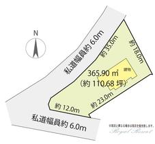 | 主な接道 | 私道、南、幅員:6m、接道長さ:12m、舗装あり、主たる接道