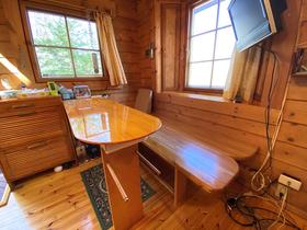 森泉郷別荘地からコンパクトなフィンランドログが登場です。建物はまだまだ状態は良く、手直しなしでご利用頂けます。敷地内には平坦な場所もありますのですぐにウッドデッキを設置できる状態です。手作りのピザ窯や燻製機、BBQコンロも備え付けられていますので存分にアウトドアも楽しめます。DIYやソロキャンプ好きの方、ワーケーション、初めての別荘を購入と考えている方にもおすすめです。管理事務所からも近く何かあっても安心でき、前面道路も幅員が広く車にやさしい舗装道路といったロケーションになります。緑の中で静かな別荘ライフをお楽しみ頂きたい方、ぜひ一度ご覧ください。