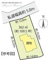 | 主な接道 | 私道、北西、幅員:5m、接道長さ:12m、舗装あり | ||