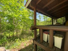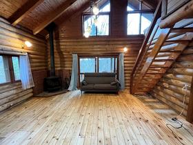 軽井沢別荘地の穴場、紀州鉄道別荘地に程度の良いログハウスが登場しました!玄関を入ると木の匂いに満たされるのがログハウスの良いところ。室内は天井が高く、大きな窓から室内に光があふれ、とても明るく開放的です。デッキも広々しており、正面には建物はないので広々とした借景を楽しむことができます。ロフトも広く、ご友人がお泊りの際は寝室としても使用できます。また薪ストーブも備えており、冬もお使いいただけます!軽井沢で別荘デビューの方にはおススメの物件です。ぜひ内見にいらしてください。